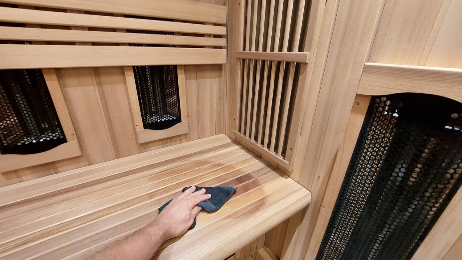 Ponadto pozostaw drzwi kabiny na podczerwień uchylone po każdej sesji, aby zapewnić wentylację. Pozwala to na ucieczkę wilgoci i szybsze wyschnięcie drewna. Zapobiega to tworzeniu się pleśni i zapewnia świeży zapach w kabinie.